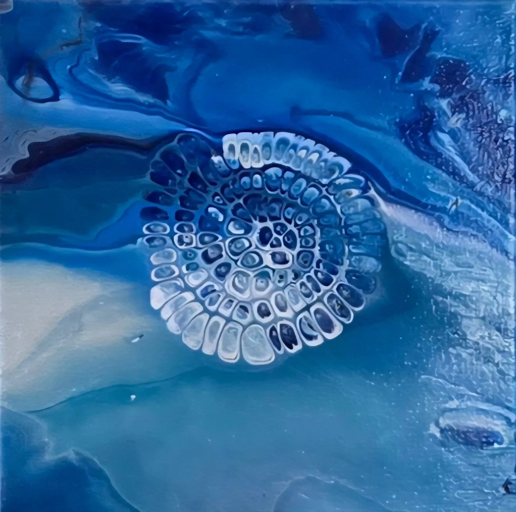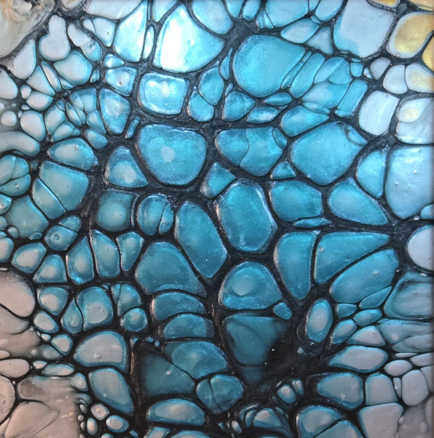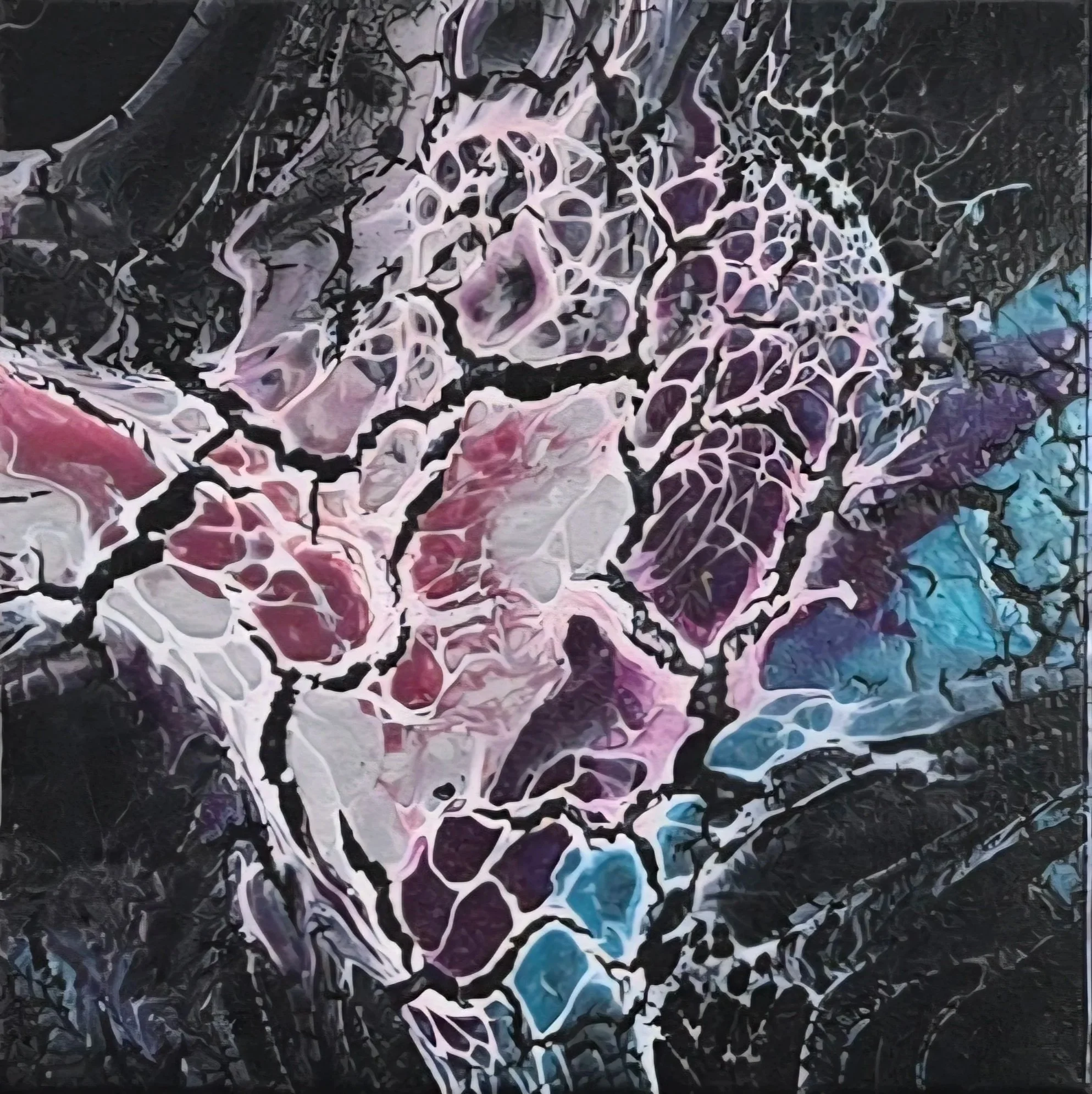 “Flow-motion is my exploration of movement — and my ongoing debate with gravity. My process is a mix of precision and surrender: I pour, tilt, and guide the paint until it decides where to land. Every piece begins as an act of control and ends as an act of trust.